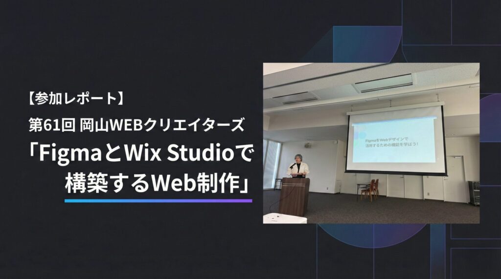 2026年2月14日(土)、岡山市のターミナルスクエアで開催された「第61回 岡山WEBクリエイターズ『FigmaとWix Studioで構築するWeb制作』」に参加してきました。セミナーは Figmaをクライアントワークにつなげる方法 と、 プロ仕様へ進化したWix Studioの仕組みと可能性 をテーマにした内容で、Web制作の現場と教育の双方に役立つ具体的な話が多くありました。(岡山WEBクリエイターズ -okaweb-)