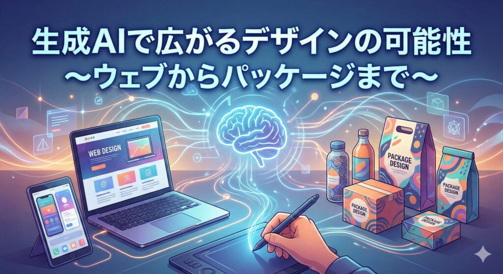 この記事では、生成AIがデザインのどんな場面で役立つのか、特に「ウェブデザイン」や「グラフィックデザイン」「パッケージデザイン」といった分野を中心にご紹介していきます。AIを上手に活用すれば、作業時間が短縮されるだけでなく、新しい発想やインスピレーションも得られるので、デザインがもっと楽しくなりますよ!