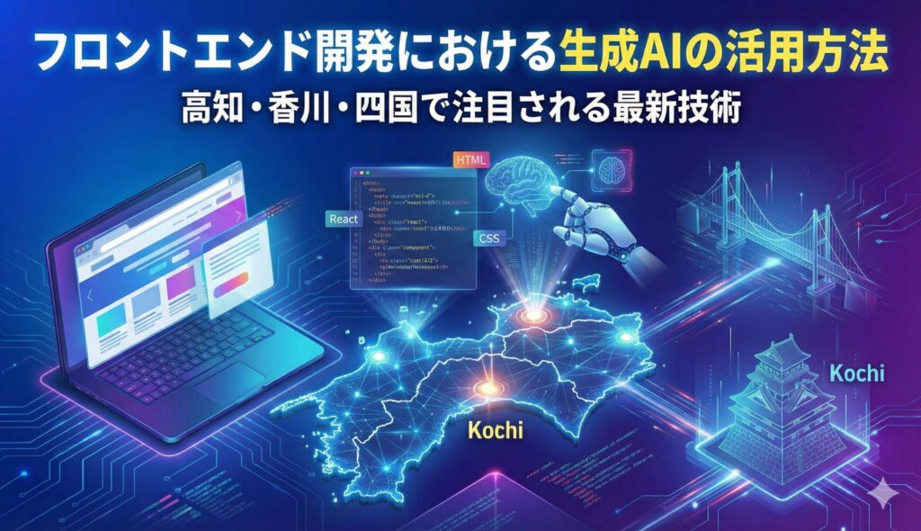 また、四国エリアを含む地方では、生成AIを活用して観光や農業など、地域産業に特化したサービス開発も可能です。今後、生成AIを効果的に活用するためには、技術教育やITインフラの整備、地域産業との連携が鍵となるでしょう。これにより、生成AIがフロントエンド開発の未来をさらに進化させ、地域や業界を超えて幅広く貢献することが期待されます。